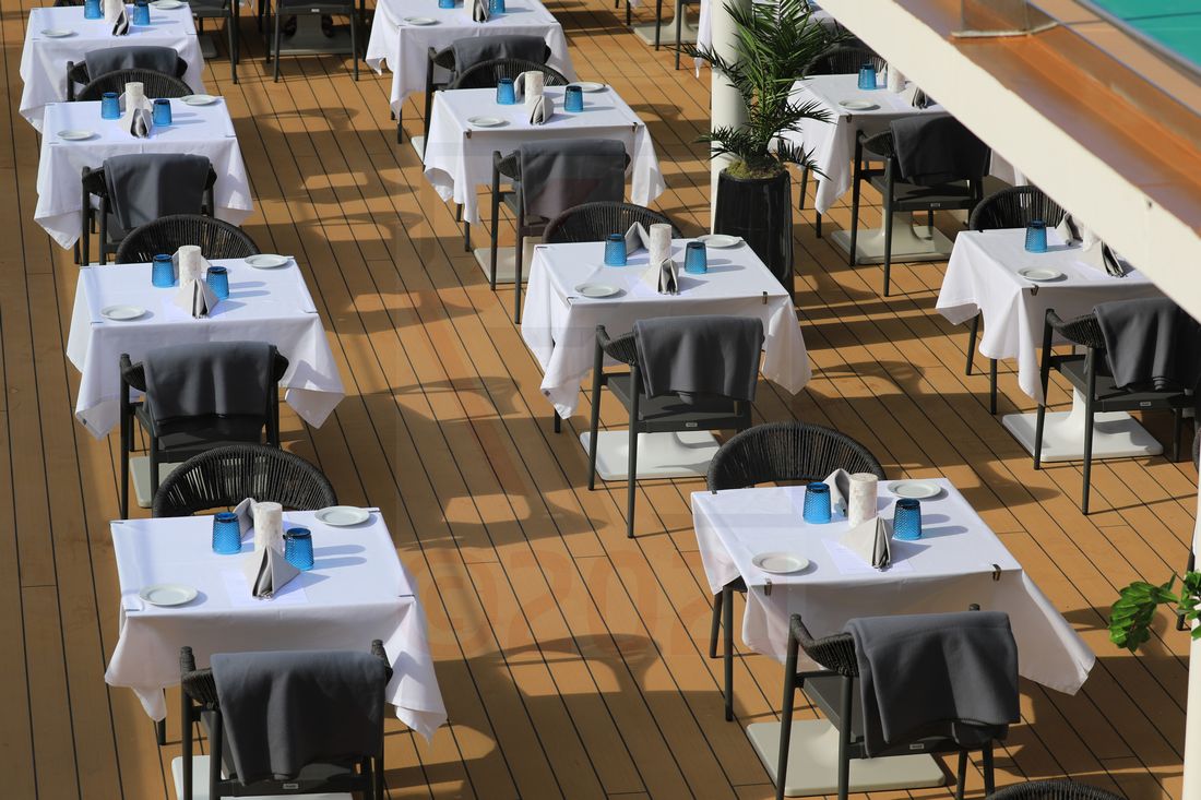 Foto: Al Fresco Terrasse World Voyager Speisen mit Meerblick
