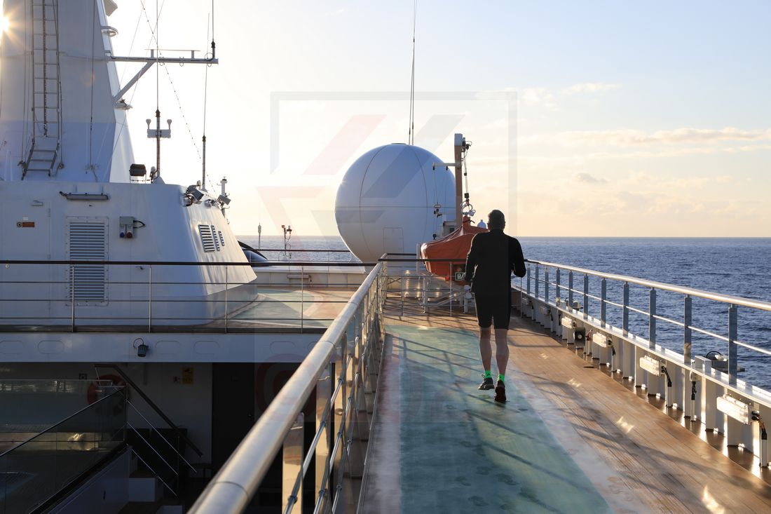 Da die World Voyager kein klassisches Kreuzfahrtschiff, sondern ein Expeditions-Kreuzfahrtschiff ist, verfügt sie über großzügig dimensionierte Aussendecks. Sowohl im Heckbereich der Decks 5 und 6 als auch auf Deck 7 und 8 stehen Freidecks für ausgiebige Beobachtungen unter freiem Himmel bereit. Diese sind ebenfalls mit Loungemöbeln ausgestattet. Bemerkenswert ist die Tatsache, dass es auf der World Voyager keine Deckbereiche gibt, die mit hohen Glaswänden versehen sind. Diese schützen zwar vor Wind, nehmen aber die freie Sicht. Auch in Fahrtrichtung ist ein freier Blick garantiert. Das ist wirklich großartig. Deck 8 ist in erster Linie ein Joggingpfad, kann aber auch als klassisches Sonnendeck genutzt werden. Von Deck 8 aus erreicht man darüber hinaus den Hubschrauberlandeplatz und kann sehr gut die verstauten Zodiacs sehen, von denen es an Bord der World Voyager insgesamt 12 gibt. Der Hubschrauberlandeplatz wäre als zusätzliche Deckfläche nutzbar, verfügt aber über keine umlaufende Reling.