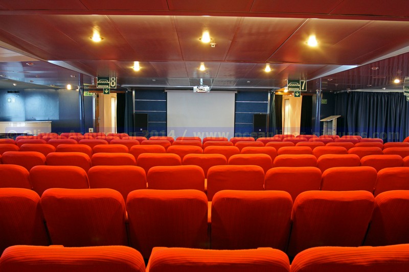 Dem Beat Club angeschlossen ist das Auditorium bzw. Kino, ein Raum der sich besonders für Vorträge zu Landausflügen anbietet. Alle Kreuzfahrten der MS „Azores“ werden ja von ausgewiesenen Experten begleitet, die in Form unterhaltsamer Lichtbildvorträge über die entsprechenden Anlaufhäfen informieren.