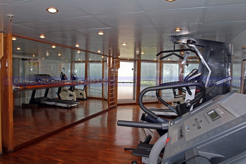 Auf Deck 7 (Observation Deck) kommen Sportfreunde prinzipiell auf ihre Kosten, müssen sich allerdings an nicht mehr ganz zeitgemäßen Geräten fit halten.