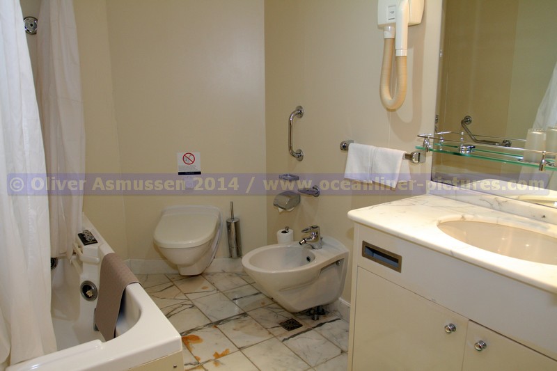 Die aus unserer Sicht zu kleinen Fernseher haben wir bereits erwähnt, die Bäder sind großzügig dimensioniert und komfortabel ausgestattet. Die Balkone verfügen über zwei Stühle und einen kleinen Tisch, das Mobiliar und der Bodenbelag sind neu.