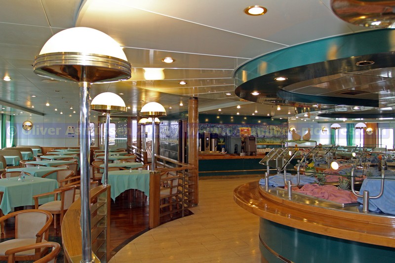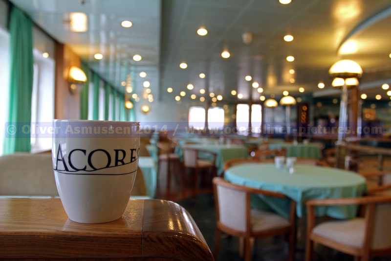 Die Kaffeetassen finden im Buffet-Restaurant in erster Linie Nutzung durch den kostenfreien Kaffee-Automaten. Heute nur noch selten zu finden, bietet die „Azores“ einen sehr großzügigen Außenbereich vor dem Buffet Restaurant, der den kompletten Poolbereich mit einschließt. Der Pool ist ausreichend groß dimensioniert und bietet auch die Möglichkeit, die eine oder andere Bahn zu schwimmen. Eine dem Außenbereich angeschlossene Bar sorgt dafür, dass der Kreuzfahrtgast keine trockene Kehle bekommt.