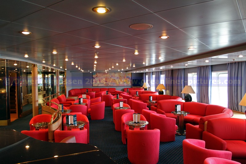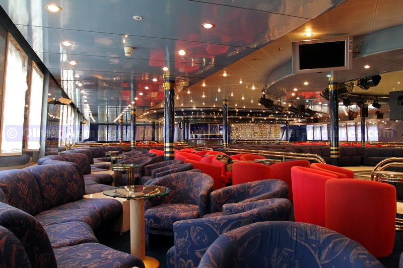 Die Lounges klassischer Kreuzfahrtschiffe sind ohnehin eher gediegen, zweckmäßig und unspektakulär eingerichtet. Da macht auch die Calypso Lounge keine Ausnahme, erfüllt sie ja schließlich den Zweck der Abendunterhaltung. Die Flachbildschirme und Bühnentechnik sind aktueller Bauart und erfreuen sich einem guten Zustand.
