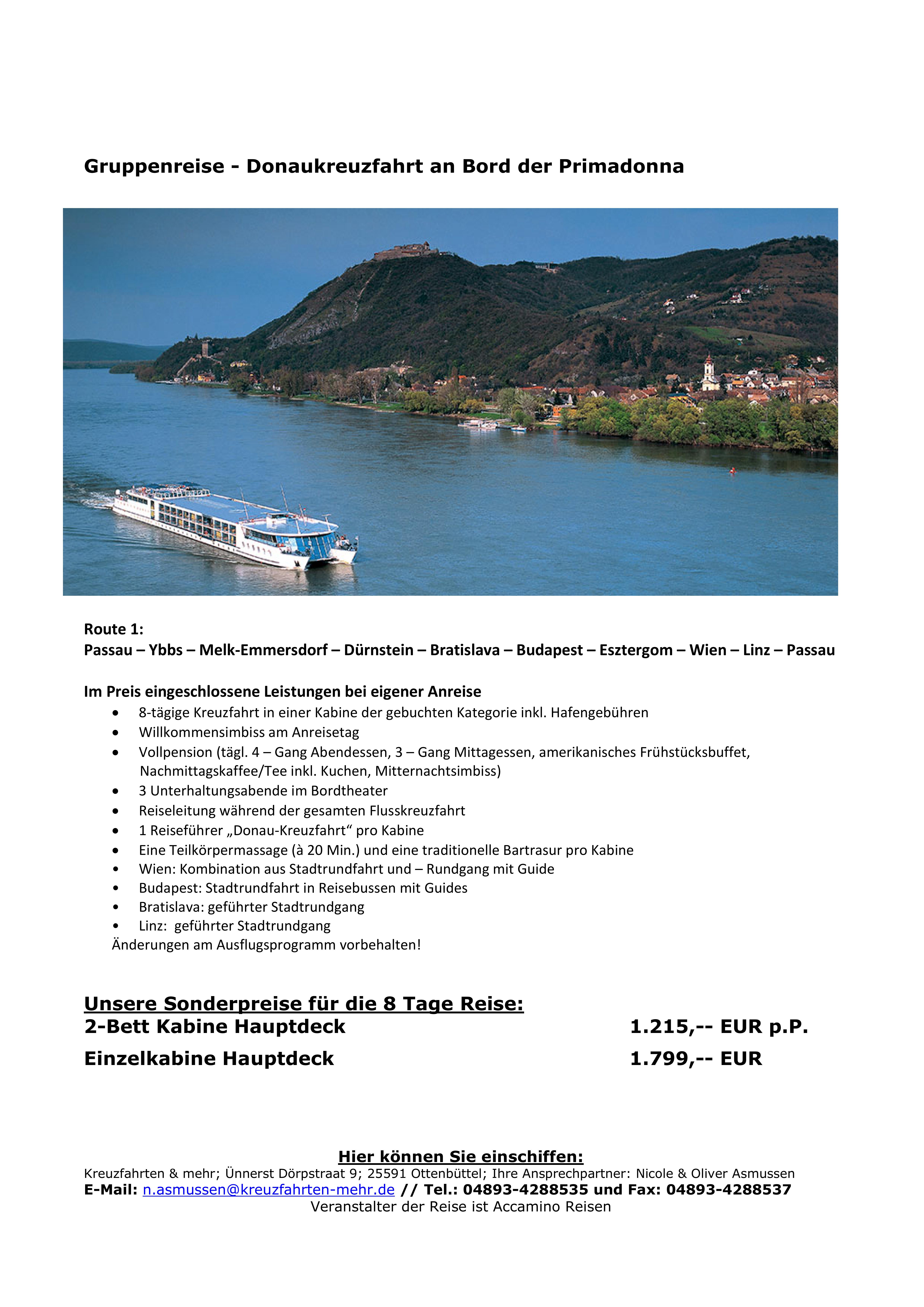 ich habe noch 2 Kabinen auf dem Hauptdeck für unsere Gruppenreise vom 28.09.-05.10.18 an Bord der Primadonna auf der Donau.
