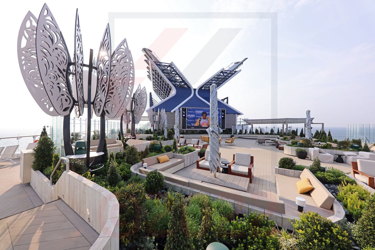 Was auf der Solstice-Class der „Lawn Club“ aus Echtrasen war, ist auf der Celebrity Edge und der Celebrity Apex der Rooftop Garden. Dieser wurde nun auf der Celebrity Beyond noch einmal vergrößert und umgestaltet. Die Anzahl der Sitzbereiche wurde deutlich erhöht. Wie schon auf der Celebrity Apex trennt eine dezente Glaswand den Rooftop Garden vom integrierten Rooftop Garden Grill ab. Viele verspielte, gemütliche Sitzgelegenheiten, schaffen eine wunderbare Atmosphäre. Abends flimmern Filme auf einer riesigen Videoleinwand. Echte und stilisierte Pflanzen wurden als Sichtschutz installiert. Viele geschwungene Linien setzen den einzigartigen Designstil des Schiffes fort.