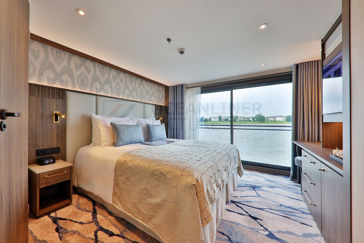 Die drei Passagierdecks werden nicht nur mit einer Treppe, sondern zusätzlich mit einem Fahrstuhl verbunden. Das offene Atrium lässt eher den Eindruck entstehen, sich in der Lobby eines Premiumhotels an Land zu befinden, als auf einem nur 80m langen Flusskreuzfahrtschiff. Das Raumgefühl ist sehr großzügig.