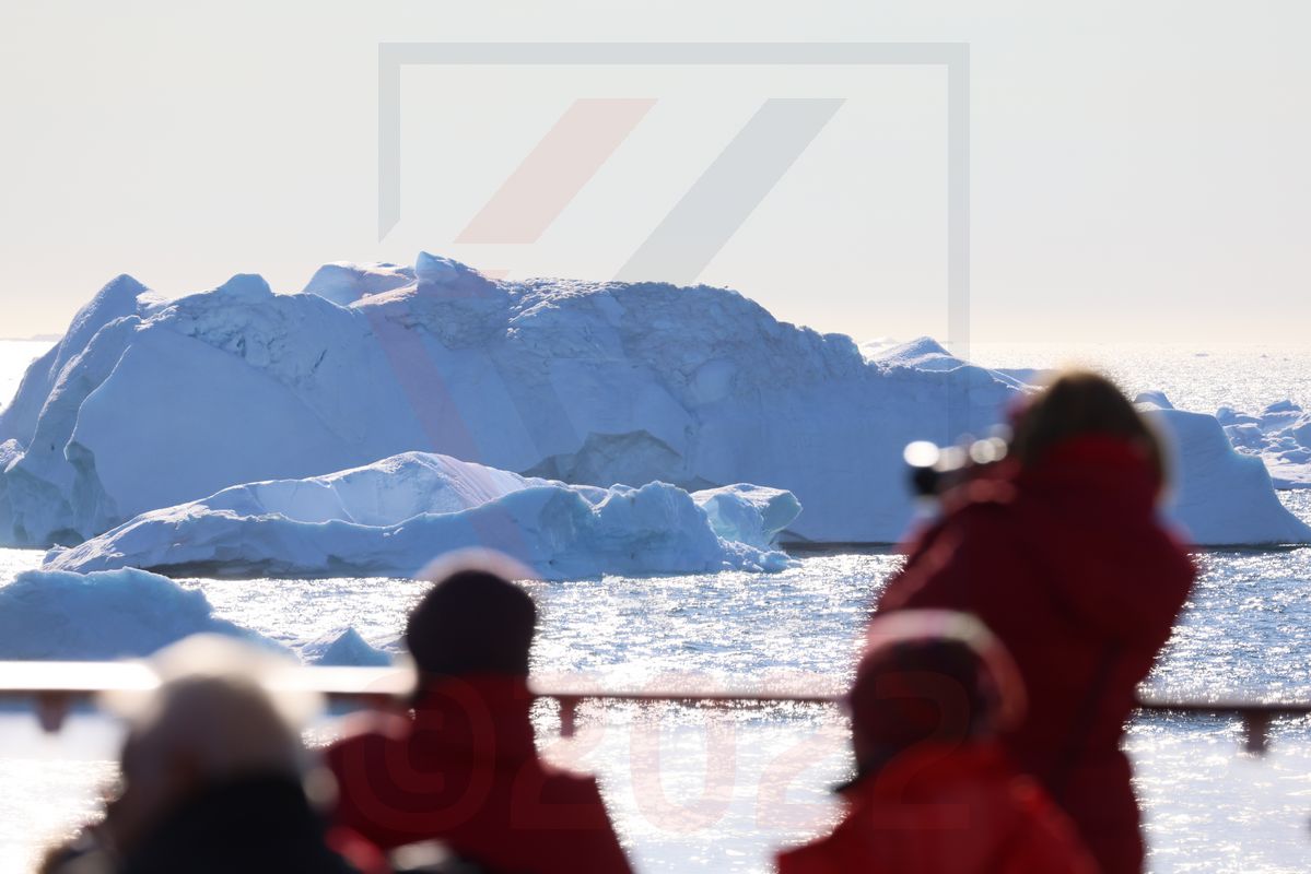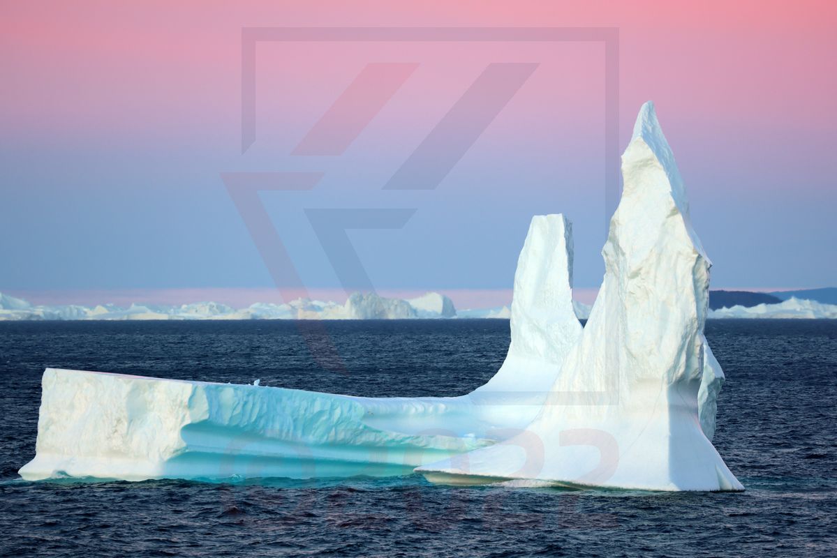 Grönland ist bekannt für seine Eisberge. Von diesen gibt es an der Westküste mehr als an der Ostküste, da die Gletscher an der Westküste deutlich aktiver sind. Große Eisberge können bekanntlich gefährlich für Schiffe werden. Insbesondere die Exemplare vom Eisfjord in Ilulissat, die sehr weit in Richtung Süden treiben können. Bei einem Eisberg handelt es sich um eine Masse schwimmenden Eises, das vom Rand eines Gletschers abgerissen (gekalbt) ist und anschließend im Ozean treibt. Nur etwa 1/8 eines Eisbergs befindet sich oberhalb der Wasserlinie, was sie so gefährlich macht. Die kleinsten Eisberge nennt man Growler. Große Eisberge erreichen ohne Probleme eine Höhe von 75m und mehr. Sie sind dann an der Wasseroberfläche mindestens 200m lang. Es gibt manchmal Eisberge mit schwarzen Einschlüssen. Diese stammen dann aus dem Bereich einer Moräne. Es sind also von einem Gletscher transportierte Schuttablagerungen darin enthalten. Eisberge können im Laufe ihres Lebens mehrfach auseinanderbrechen und kentern, wodurch immer neue, bizarre Formen entstehen. Wenn ein Eisberg kentert, sollte man sich mit kleinen Booten bzw. den Zodiacs nicht in der Nähe aufhalten. Die erzeugten Wellen können immense Höhen erreichen und zur Gefahr werden.