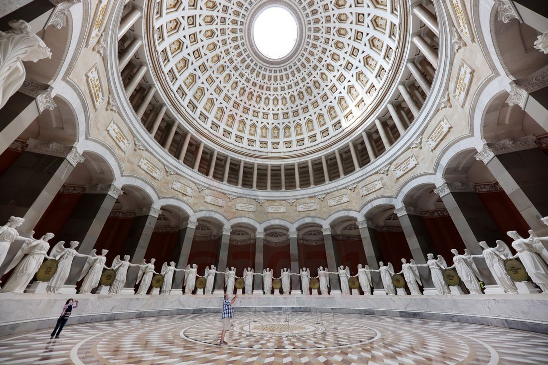 Bevor es nun zurück zur Lady Diletta geht, die derweil nach Regensburg gefahren ist, besuchen wir noch die Befreiungshalle in Kelheim. Die Befreiungshalle ist schon von weither sichtbar und befindet sich oberhalb der Stadt Kelheim an der Einmündung der Altmühl bzw. des Main-Donau-Kanals. Erbaut wurde die Halle 1842 bis 1863 im Gedenken an die gewonnenen Schlachten gegen Napoleon. Das Innere der Halle ist als großer Kuppelsaal gestaltet, der durch ein Opaion (Kuppelauge) im Scheitel der Kuppel erhellt wird. An der Außenfassade der Halle stehen 18 Kolossalstatuen. Die Halle hat eine Höhe von 45m und einen Durchmesser von 29m.