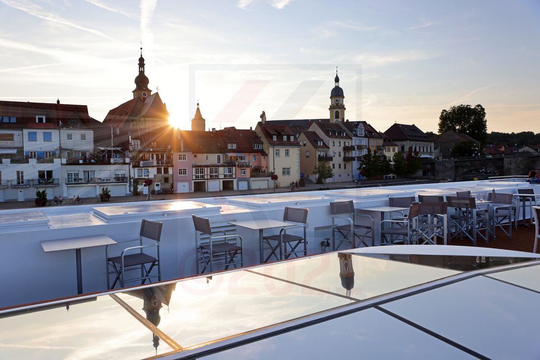 Bei einem Spaziergang durch die Altstadt von Regensburg ist jedoch nicht nur der Dom sehr sehenswert, auch das Alte Rathaus, die Gebäude am Haidplatz und am Bismarckplatz sind einen Blick wert und von historischer Bedeutung. Ein Rundgang über die Steinerne Brücke darf ebenso wenig fehlen wie eine Pause in einem der zahlreichen, gemütlichen Cafés am Donauufer. Regensburg bietet den passenden Abschluss dieser außergewöhnlichen Flusskreuzfahrt von Düsseldorf über den Rhein, Main und den Main-Donau-Kanal bis hin zur Donau. Und als ob das Wetter während dieser Reise nicht ohnehin schon rekordverdächtig schön war – mehr als 100 Sonnenstunden sind es bis heute geworden – gehört der Sonnenuntergang am Abend zu den ganz besonders schönen.
