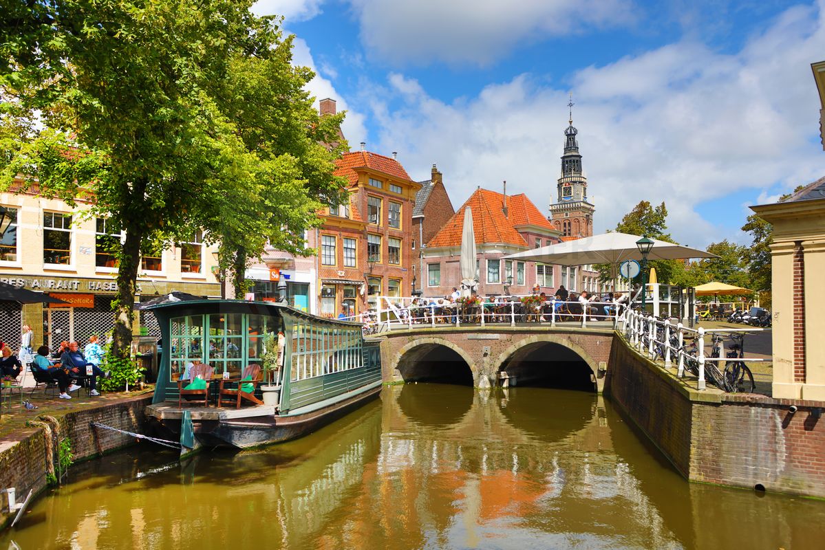 Die spannende Reise beginnt am nächsten Mittag. Die Swiss Ruby fährt auf dem Nordzeekanaal zunächst in Richtung Velsen, vorbei an großen Containerschiffen, biegt dann aber vorher auf einen kleinen Kanal ab und nimmt Kurs auf Alkmaar. Alkmaar begeistert sofort mit einer malerischen Altstadt, die man als „typisch niederländisch“ bezeichnen kann. Aber nicht nur malerische, kleine Gassen, charmante Cafés und zahlreiche Restaurants überzeugen den Besucher. In Alkmaar sind die Geschäfte 7 Tage in der Woche geöffnet, einen Besuch auf dem Käsemarkt sollte man nicht verpassen. Der Käsemarkt findet im Juli und August sowohl jeden Freitag als auch Dienstag statt.