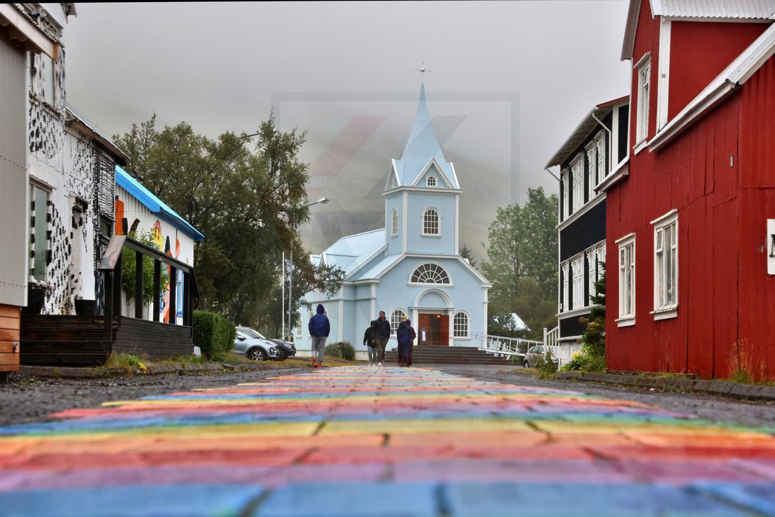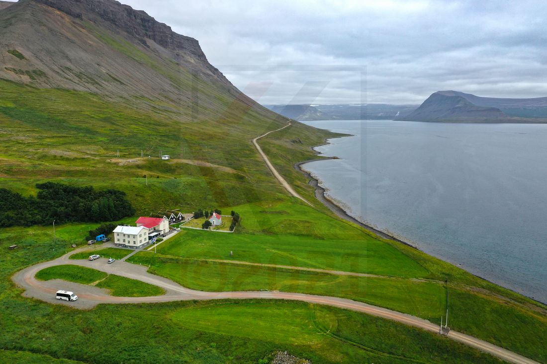 Bevor der Wasserfall erreicht wird, gibt es einen Stopp. Und zwar genau an jenem Café, welches damals schon einmal Anlaufstelle auf individueller Basis gewesen ist. An der Hauptverbindungsstraße 60, die entlang des Fjordes führt, weist heute wie damals nur ein kleines Schild auf das Café hin, welches am Ende des Schotterwegs zu finden ist. Auf einer Anhöhe angekommen steht man dann inmitten einer Szenerie, die einem Ölgemälde entsprungen sein könnte. Auf der rechten Seite befindet sich eine kleine, wunderschöne Holzkirche und auf der linken Seite stehen drei kleine Holzhäuschen. In diesen sind das genannte, urgemütliche Café, ein Museum und eine kleine Unterkunft untergebracht. Die Besitzerin backt den Kuchen selbst, nach einem isländischen Rezept – und er ist höllisch lecker. Der Ausblick über den Fjord und die unbeschreibliche Stille hier oben sind unbezahlbar!