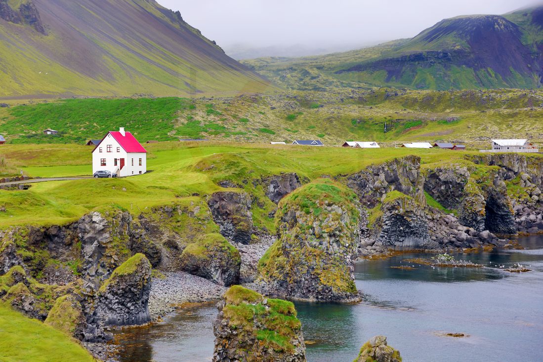 Kaum weniger reizvoll ist die landschaftlich einmalig schöne Region rund um Arnarstapi, einem kleinen Fischerort in der Gemeinde Snaefellsbaer auf der Halbinsel Snaefellsnes. An den zerklüfteten Felsen brüten tausende Seevögel und es entfaltet sich eine unwirkliche Vulkanlandschaft. Die Seevögel beherrschen den Luftraum und die Fluken einzelner Wale sind vor der Küste zu beobachten. Ganz ohne 5-stündiges Whale Watching. Diese Gegend ist so einzigartig und malerisch schön, dass sie bereits in der Liste der schönsten Bergdörfer Europas aufgenommen wurde. Als Bergdorf wird Arnarstapi aufgrund seiner Lage bezeichnet. Besonders eindrucksvoll ist die einstündige Wanderung entlang der Küste.