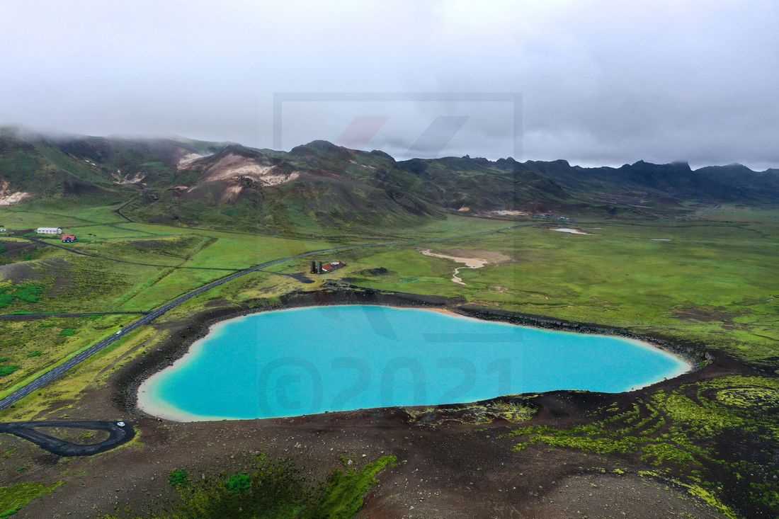 Auf dem Parkplatz, auf dem ich den Mietwagen geparkt habe, treffe ich auf ein Fernsehteam. Ich erfahre auf Nachfrage, dass der Vulkan offenbar Eruptionsphasen hat, bekomme das auf einer Grafik sogar anschaulich dokumentiert. Offenbar ist letzte Nacht eine aktive Phase des Geldingadalir gewesen, heute Morgen eine inaktive. Demnach müsste am heutigen Nachmittag wieder eine Eruptionsphase folgen. Da mein Zeitfenster nicht ausreichen wird, um diese abzuwarten, breche ich diese Vulkanexkursion endgültig ab und fahre zu weiteren, interessanten Spots. Dazu zählen der Gigvatnsvatn, der Kleifarvatn die Krysuvik geothermal area und der Kerid Crater. Das Wasser des Gigvatnsvatn schimmert intensiv türkis und füllt einen alten Vulkankrater. Er liegt wie auch der Kleifarvatn im Geothermalgebiet Krysuvik. Die Ufer um die heißen Quellen sind in allen erdenklichen Grün-, Gelb- und Rottönen gefärbt. Es blubbert und dampft an allen Ecken. Die sprudelnden Schlammbecken spielen scheinbar eine eigene Symphonie, im Takt zum aufsteigenden Dampf. Die aktiven, sprudelnden und heißen Quellen sind in dieser Region nicht zählbar.