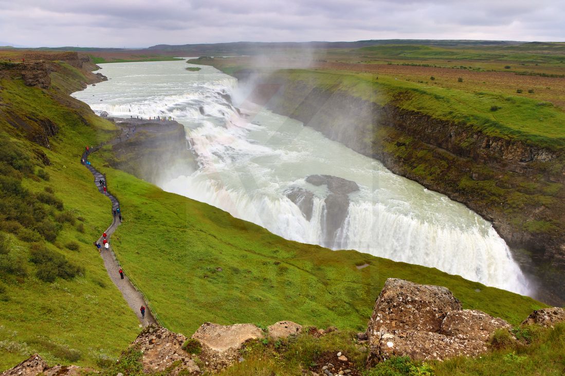 Als erschreckend bezeichne ich die Erkenntnis, dass sich die Anzahl der Betonwege, die an und um den Wasserfall heran bzw. herum führen, im Vergleich zu meinen letzten Besuchen in den Jahren 2017 und 2013 noch einmal erhöht hat. Dort, wo vor acht Jahren noch unbefestigte Wege an eine natürliche Steilkante heranführten, läuft man nun auf Betonwegen. Sie enden vor Absperrgittern auf Aussichtsplattformen. Das einst unberührte Bild der Landschaft hat sich leider bedeutend verändert. Zum Glück findet Tourismus derzeit in gesundem Maße statt und man hat das Gefühl, dass die derzeitigen Besucher viel Wert auf den Erhalt der Natur auf Island legen. Ausgelegt sind die Wege und Einrichtungen jedoch auf einen Massentourismus, wie er vor der Corona-Pandemie stattgefunden hat. Man darf sich die Frage stellen, warum einerseits so viel Wert auf den Erhalt der unberührten Natur auf Island gelegt wird, andererseits aber das Landschaftsbild mit Betonwegen, Stahlgeländern und Begradigungen derart verändert wird.