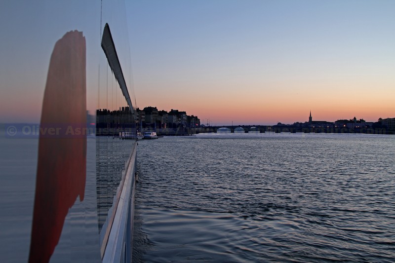 Aufgrund des inzwischen völlig abgeflauten Windes spiegelten sich die Silhouette der Stadt sowie auch der Morgenhimmel auf der Saône und lieferten sich ein regelrechtes Wettspiel um die schönsten Farbschattierungen. Da waren sie wieder, die Traummomente einer Flusskreuzfahrt.