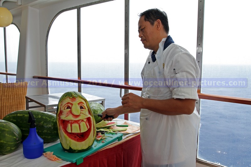 Foto: Danilo, der Magier der MS HAMBURG, verwandelt jedes Buffet in eine Augenweide
