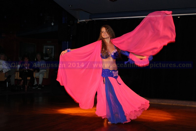 Gekrönt wurde der Abend des zweiten Seetages von der „Crew Show“ in der Lounge, in der sich beeindruckende Talente entdecken ließen. So wurde manches Crew-Mitglied zum Sänger, Schauspieler oder gar zur Bauchtänzerin.