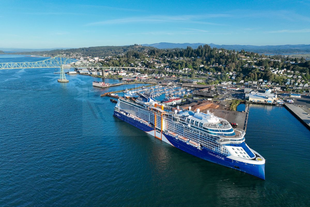 Am nächsten Morgen kommt die Mündung des Columbia Rivers in Sicht. Nach einer 180-Grad Drehung vor der Astoria Megler Bridge macht die Celebrity Edge an der Pier der Stadt Astoria fest. Da es sich um einen Erstanlauf handelt und das Anlegemanöver länger als geplant dauert, wird die Liegezeit spontan um eine Stunde verlängert. Wunderbar.