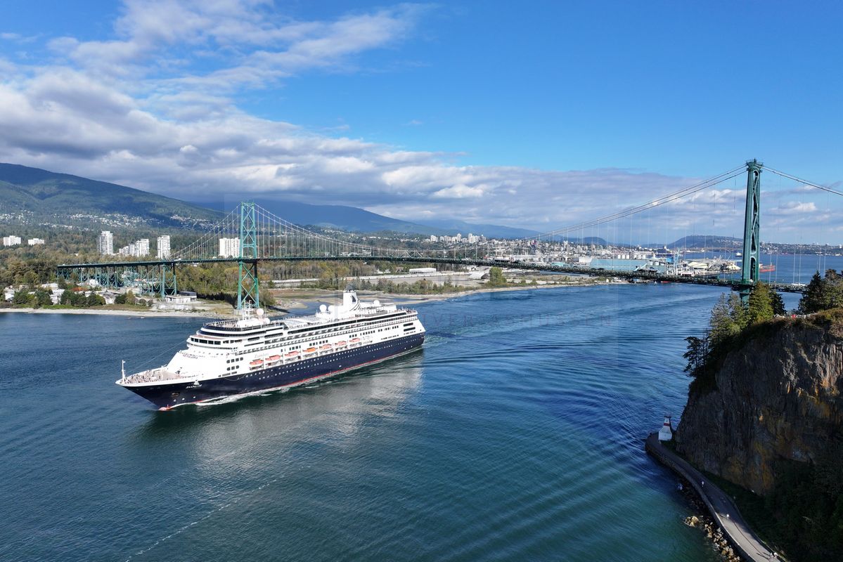 Foto: Die Zaandam von Holland America Line pasiert die Lions Gate Bridge