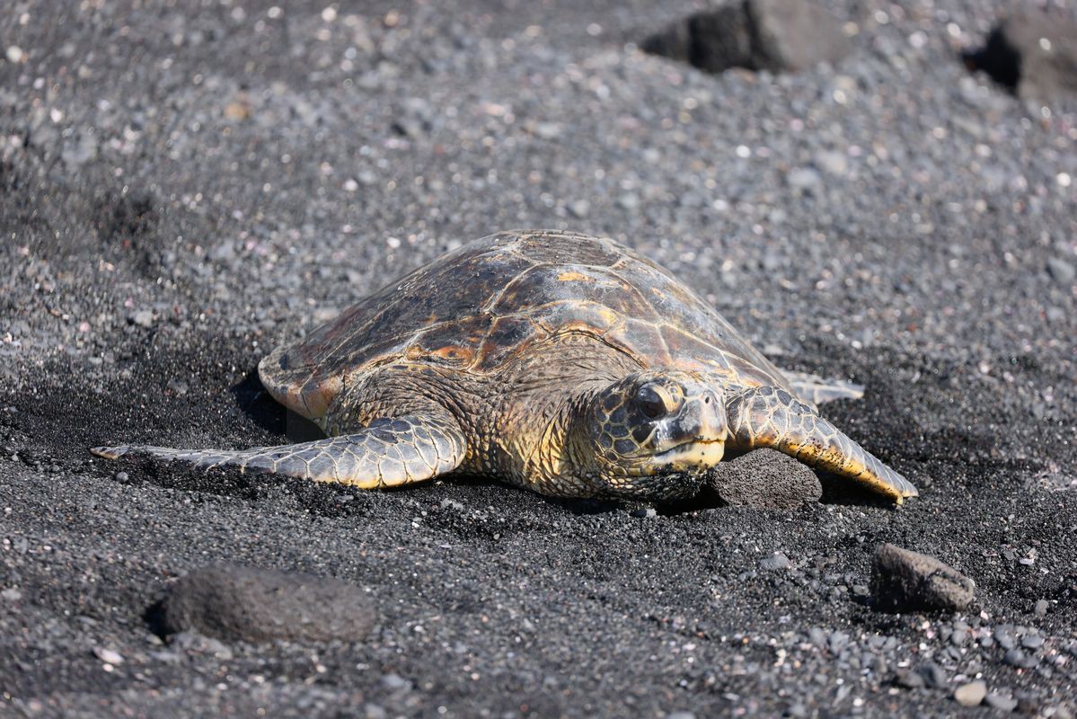 Foto: Grüne Meeresschildkröte Punaluu Beach Hawaii Big Island