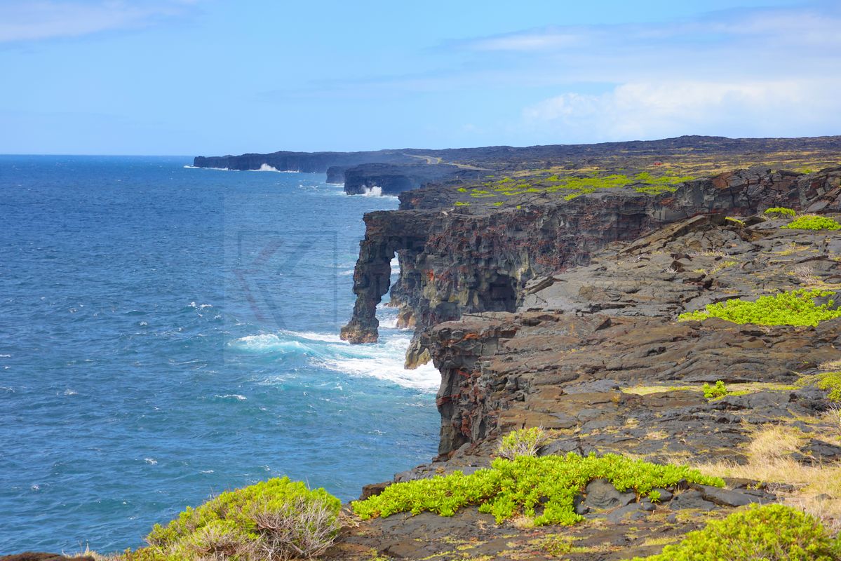 18 Meilen weiter in Richtung Küste stößt man auf ein weiteres Highlight, den Hōlei Sea Arch, einen 27m hohen Bogen, der von den Wellen des Pazifischen Ozeans geformt wurde. Er liegt am Ende der Chain of Craters Road, die seit 1990 durch die Lavaströme des Puu Oo-Kraters unterbrochen wurde.