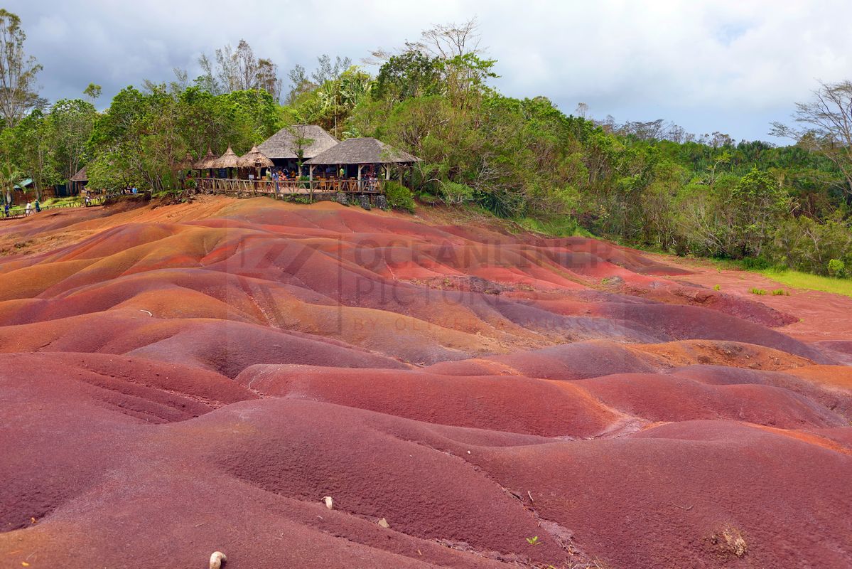 Unweit vom Wasserfall entfernt gelangt man nach einigen Minuten Fahrt auf einen weiteren Parkplatz. Nach erneuter Ticketkontrolle an einem Kassenhäuschen besteht die Möglichkeit, sich auf einem recht großen Areal zu bewegen und die Siebenfarbige Erde von allen Seiten aus zu betrachten. Vor 10 Jahren noch gab es keine Holzstege um das Gebiet herum, wie es nun der Fall ist. Außerdem besteht die Möglichkeit, auf der Terrasse eines kleinen Cafés zu verweilen und die Aussicht zu genießen.
