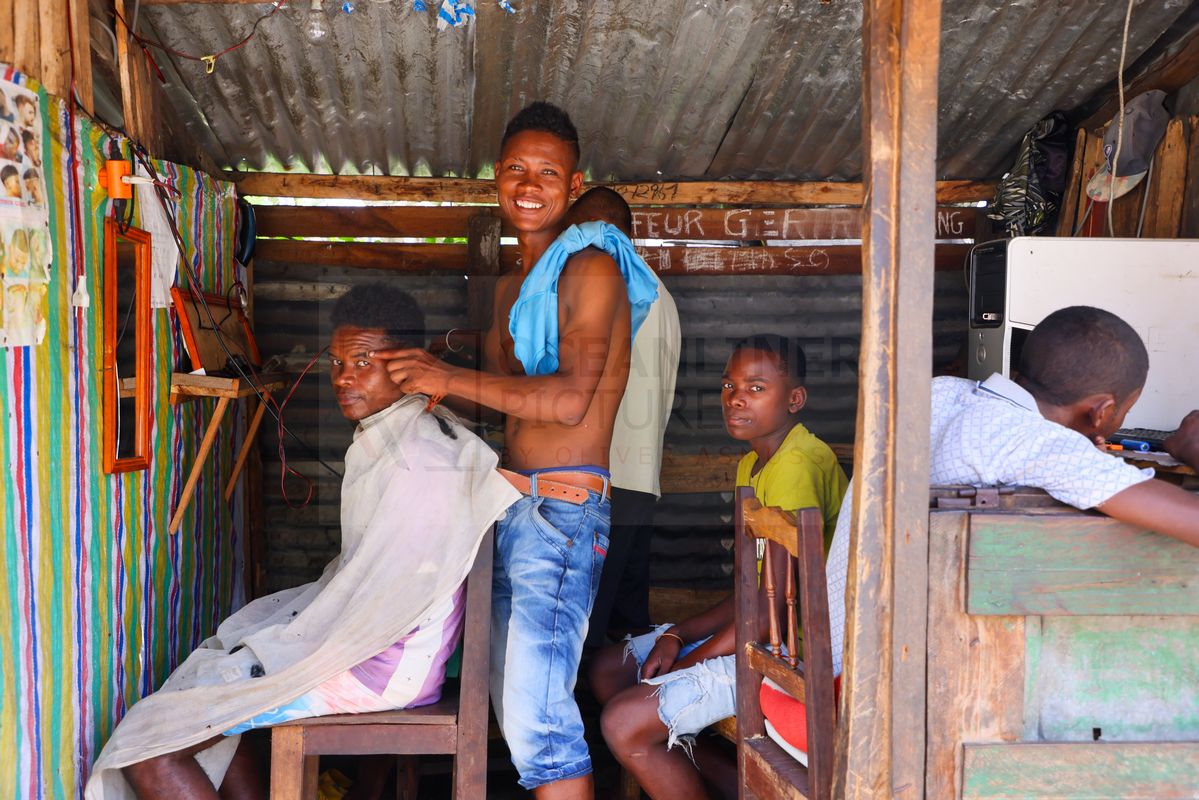 Man sollte jedoch nicht die Augen vor der Realität verschließen, sondern lieber helfen. Auch die eben genannten „Kleinigkeiten“ helfen zumindest den jeweiligen Familien etwas weiter. Nichts tun und nicht zu helfen ist auf jeden Fall falsch, soviel steht fest. Ein Spaziergang durch Tolagnaro zeigt die einfachen Lebensumstände. Auf der Hauptstraße reihen sich Märkte und Geschäfte aneinander, hier trifft man sich oder geht zum Beispiel auch zum Frisör. Dieser bedient seine Kunden allerdings nicht in einem schicken Frisörsalon oder in einem trendigen Barber-Shop, nein, hier wird in offenen Bretterbuden neben der Hauptstraße frisiert. Ich habe nachgefragt, wie viel denn so ein Haarschnitt kostet. Umgerechnet 1,- EUR. Doch einen Frisör können sich längst nicht alle hier leisten, erzählt der Frisör ganz offen. Was für uns fast nach einem kostenfreien Haarschnitt klingt, ist für die Bewohner in Madagaskar ein Vermögen! Ich denke, dies ist ein ganz gutes Beispiel für die Lebensumstände. Sobald man die Hauptstraße verlässt, bewegt man sich zwischen einfachsten Wohnunterkünften.