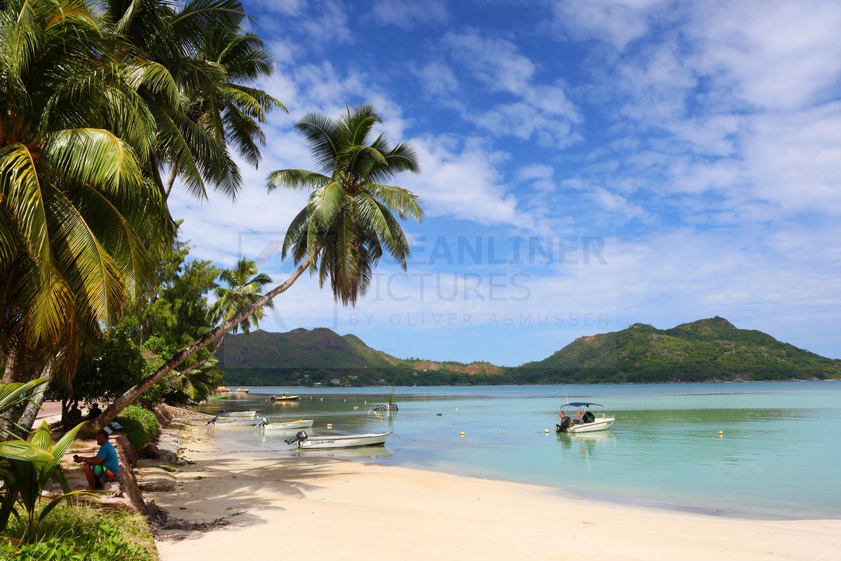 Nach einem weiteren und auch letzten Tag auf See kommen am frühen Morgen die Seychellen in Sicht. Der Anker fällt vor der Insel Praslin in den türkisfarbenen und an dieser Stelle sehr flachen, Indischen Ozean. Statt einer organisierten Inselrundfahrt mit dem Bus, oder einer Fahrt mit dem Katamaran zu einer unbewohnten Nachbarinsel, entschließe ich mich, die umliegenden Strände und auch das Tal Valleé de Mai zu Fuß zu erkunden.