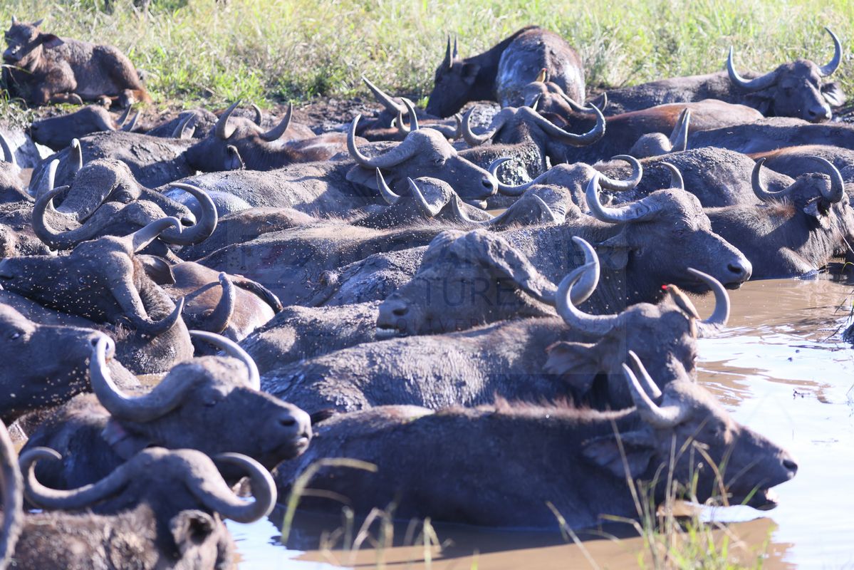 Im Laufe der Zeit erweiterte man das Schutzgebiet, 1964 ist es komplett mit Schutzzäunen versehen worden. Während der Imfolozi-Teil des Parks eher weniger stark bewachsen ist, so zeigt sich der Hluhluwe-Teil deutlich grüner. Besonders üppig ist die Vegetation, da es in den vergangenen Wochen sehr viel geregnet hat. In diesen beiden Parks leben Nashörner, Giraffen, Zebras, Wasserbüffel, Löwen, Gnus und auch Geparden. Während unserer 3-stündigen Pirschfahrt, sehen wir zwar keinen Geparden, lediglich einen Löwen und einen Elefanten, dafür umso mehr Impalas, Gnus, Nashörner und Bongos.