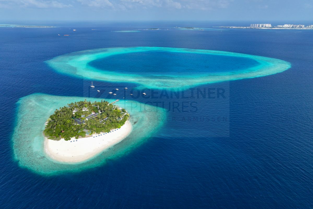 Schon bei der Anfahrt auf Male wird deutlich, dass sich hier der Dreh- und Angelpunkt der Malediven befindet. Von idyllischer Natur keine Spur. Hochhäuser dominieren das Bild und sind schon viele Kilometer vor dem Erreichen des Ankerplatzes sichtbar. Fast die Hälfte aller Einwohner der Malediven leben im Nord Malé-Atoll mitsamt der Inselhauptstadt Malé. Das sind rund 150.000 Einwohner. Direkt neben der Hauptinsel Malé liegt die Flughafeninsel Hulhulé, die über eine Brücke mit Malé verbunden ist. Die meisten Inseln im Nord-Malé-Atoll sind bewohnt, werden aber ausschließlich als Urlaubsinseln genutzt.