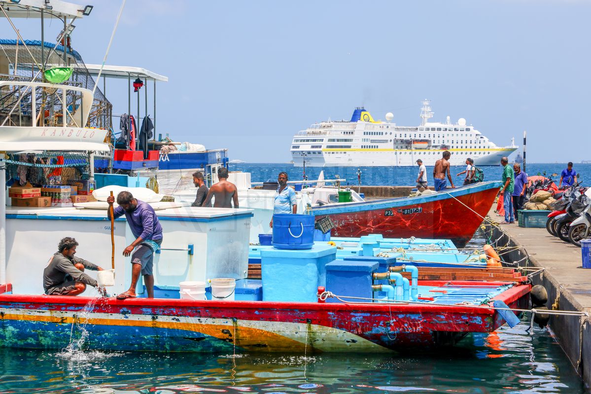 Foto: MS Hamburg vor dem Fischmarkt in Male, Malediven