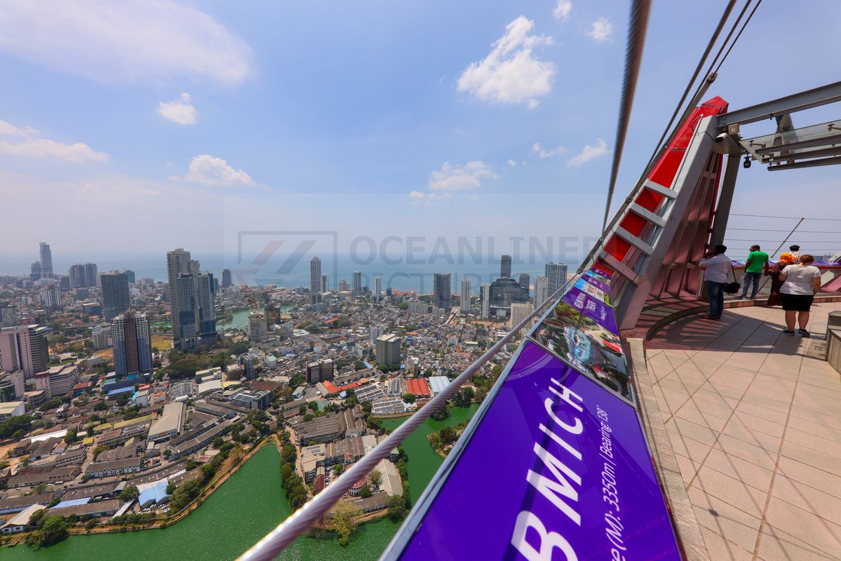 Ein Besuch auf dem Lotus Tower lohnt, trotz des Preises von 20,- USD, denn der Ausblick von der offenen Besucherterrasse in 245m Höhe ist grandios! Ich behaupte einfach mal, dass eine solche Plattform in den meisten anderen Ländern der Welt gar nicht für die Öffentlichkeit zugelassen wäre. Es gibt zwar Sicherheitsseile in Brusthöhe aber die Abstände dazwischen sind so breit, dass man ohne größere Mühe hindurch klettern könnte. Eine große Kamera lässt sich zum Beispiel entsprechend komplett zwischen den Seilen hindurch halten. Alles was dort hinunter fällt, landet irgendwo auf den Straßen unterhalb des Towers. Offenbar ist das Risiko aber gering, denn immerhin ist der Turm seit September 2022 für die Öffentlichkeit zugänglich und es scheint noch nichts passiert zu sein.