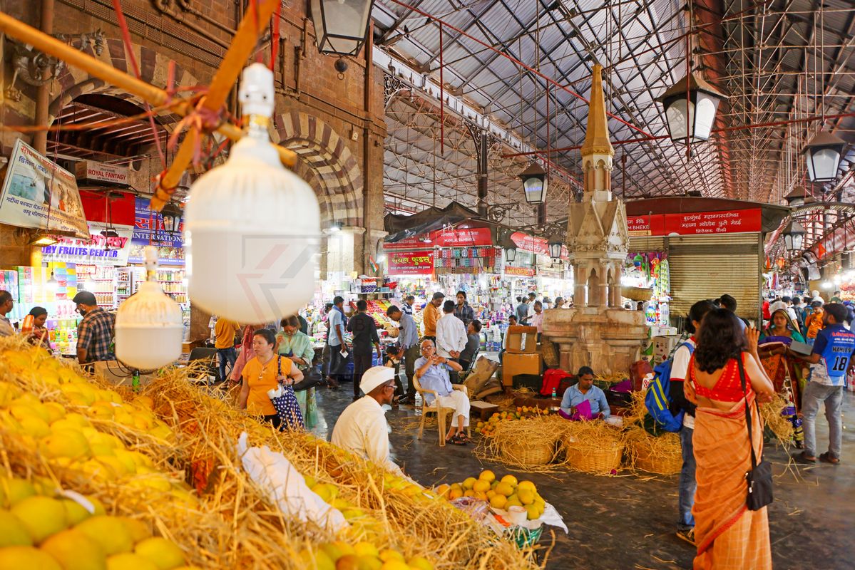 Unbedingt sehenswert ist der Crawford Municipal Market, um den herum es unfassbar quirlig und lebendig zugeht. Die Straßen sind vollgestopft mit Autos und Menschen, die Atmosphäre entsprechend einzigartig. In den weitläufigen Markthallen gibt es von Fisch- und Fleischwaren alles Erdenkliche zu kaufen. Natürlich auch Gemüse und Obst, aber auch Gewürze und lebende Tiere. Die Markthalle wurde im Jahr 1869 fertiggestellt und zählt zu den schönsten Markthallen weit über die Grenzen Indiens hinaus. Der Crawford Market ist der größte Markt in Mumbai.