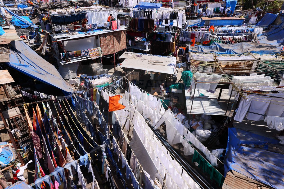 Die Mahalakshmi Dhobi Ghat Wäscherei wurde im Jahr 1890 erbaut. Seither wird dort die Wäsche von Mumbais Hotels und Krankenhäusern sowie anderen Einrichtungen gewaschen. Der Name Dhobi Ghat wird in ganz Indien verwendet und bezeichnet jeden Ort, an dem es viele Wäscher gibt. Inspiriert vom Mumbai Dhobi Ghat bauten die Briten 1902 das Dhobi Ghat in Kalkutta. Es gibt neben dem Mahalakshmi Dhobi Ghat noch weitere, kleinere Wäschereien in Mumbai, wie die Bhailal Laundry direkt neben den Slums of Colaba. Die meisten Arbeiter in den Wäschereien leben direkt neben den Einrichtungen in großen Slums. Mehr und mehr werden in jüngster Zeit die Handwaschbecken abgelöst durch Industriewaschmaschinen. Die Hotels waschen ihre Wäsche heute oft selbst und während der Corona-Zeit haben Waschmaschinen zwar noch keinen Siegeszug erreicht, doch sich mehr und mehr durchgesetzt. Direkt hinter der Wäscherei wachsen gerade neue Bürotürme in den Himmel – ein extremer Kontrast zur traditionellen Wäscherei.
