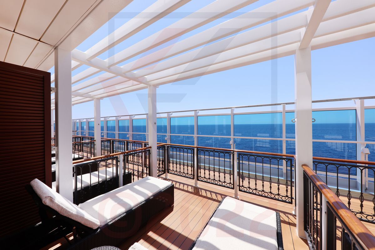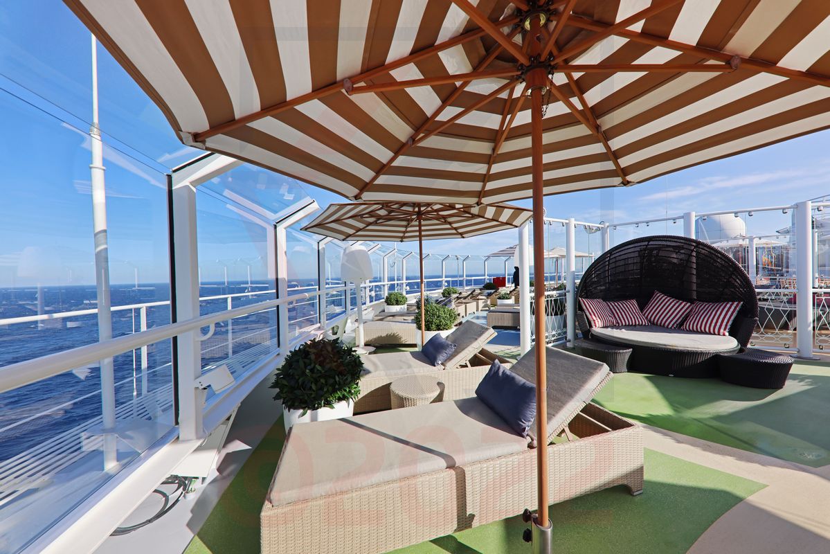 Sowohl das Casanova Restaurant als auch das Fiorentina Steakhouse bieten kleinere Außenbereiche auf einer großen Promenade, die jedoch nicht komplett um das Schiff herumläuft. Unterbrochen wird der freie Umlauf durch einen abgeschlossenen Bereich, in dem sich die Kabinen der Kategorie BP befinden. Diese nennen sich Premium Balcony Kabinen, sind aber mit einer großen Veranda versehen, die einen Zugang zur Promenade ermöglichen. Leider kann man die prinzipiell einmal um das Schiff führende Promenade nicht als „umlaufende Promenade“ bezeichnen, da sie nicht komplett öffentlich zugänglich ist.