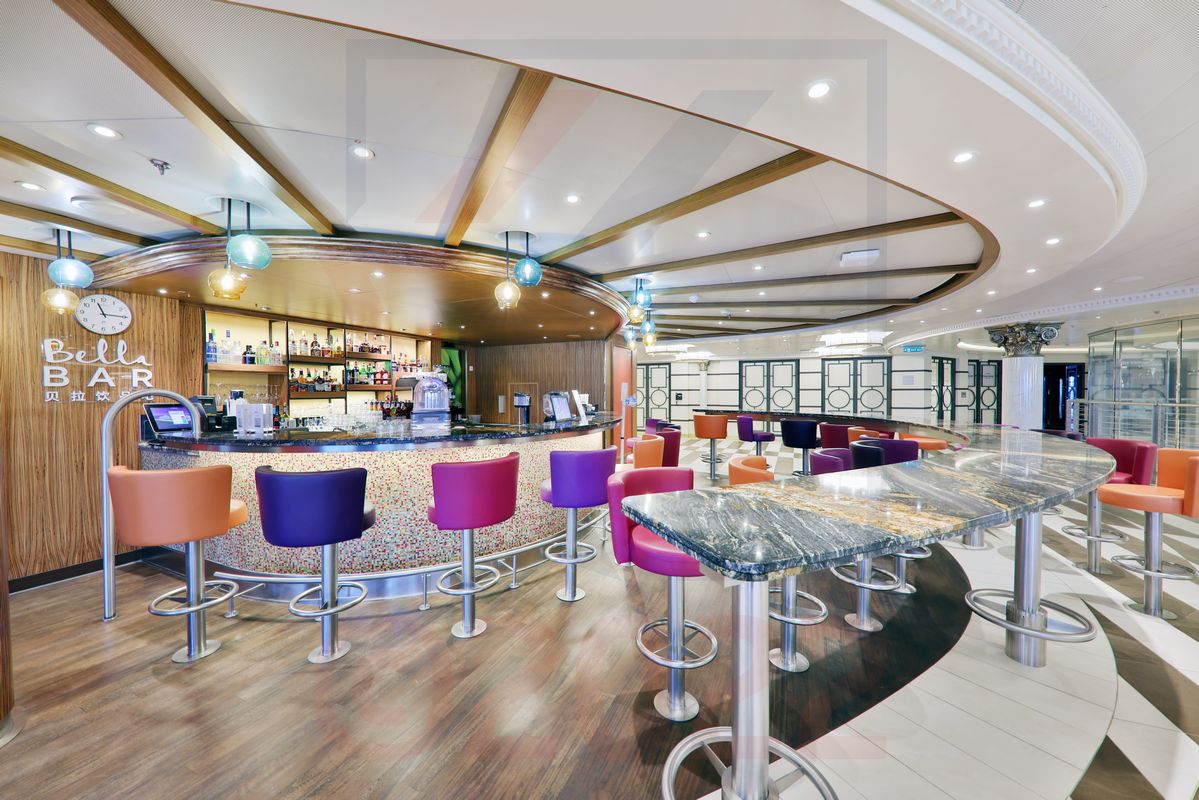 In der benachbarten Bella Bar trifft man sich zum Aperitif oder zum Digestif. Vom Milchshake bis zum Vodka ist hier alles zu bekommen. Mit insgesamt 13 Restaurants und 8 Bars stellt das Angebot an Speisen und Getränken das umfangreichste in der Costa-Flotte dar, wenn auch die Costa Smeralda 19 Bars bietet – es gibt dort jedoch zwei Restaurants weniger.
