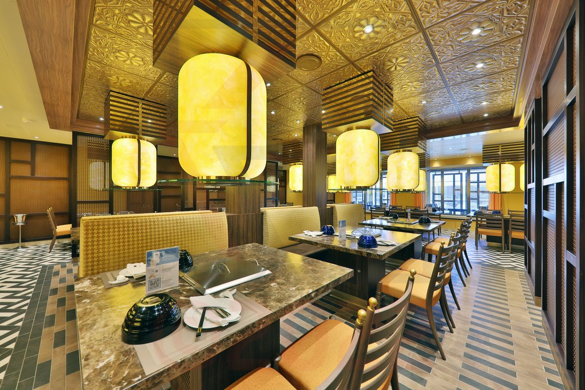 Ein weiteres Highlight der japanischen Küche stellt das Angebot auf der Speisekarte im Teppanyaki Restaurant dar. Neben hervorragenden Speisen wird den Gästen eine unterhaltsame Kochshow der japanischen Köche geboten. Das Hot Pot Restaurant ist auf Kreuzfahrtschiffen in Europa eher unbekannt. Man erhält die Zutaten, der vorher auf einer Speisekarte ausgewählten Gerichte, frisch geschnitten auf einer Etagere. Die Gäste werden im Hot Pot selbst zum Koch und bereiten sich die Gerichte in einer typisch chinesischen Brühe selbst zu. Es kann nach Belieben gemischt und nach dem Garen mit sechs unterschiedlichen Saucen kombiniert werden.