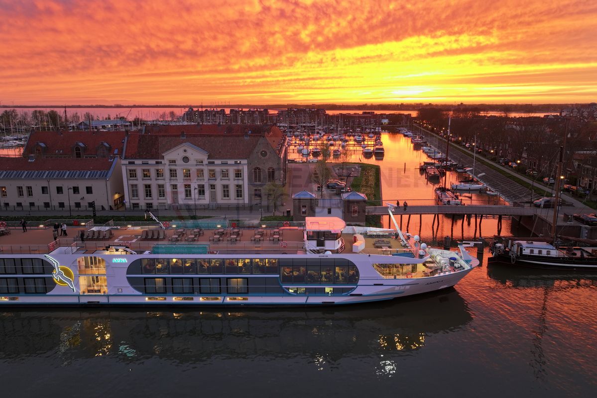 Foto: MS Amina im Sonnenuntergang in Hoorn