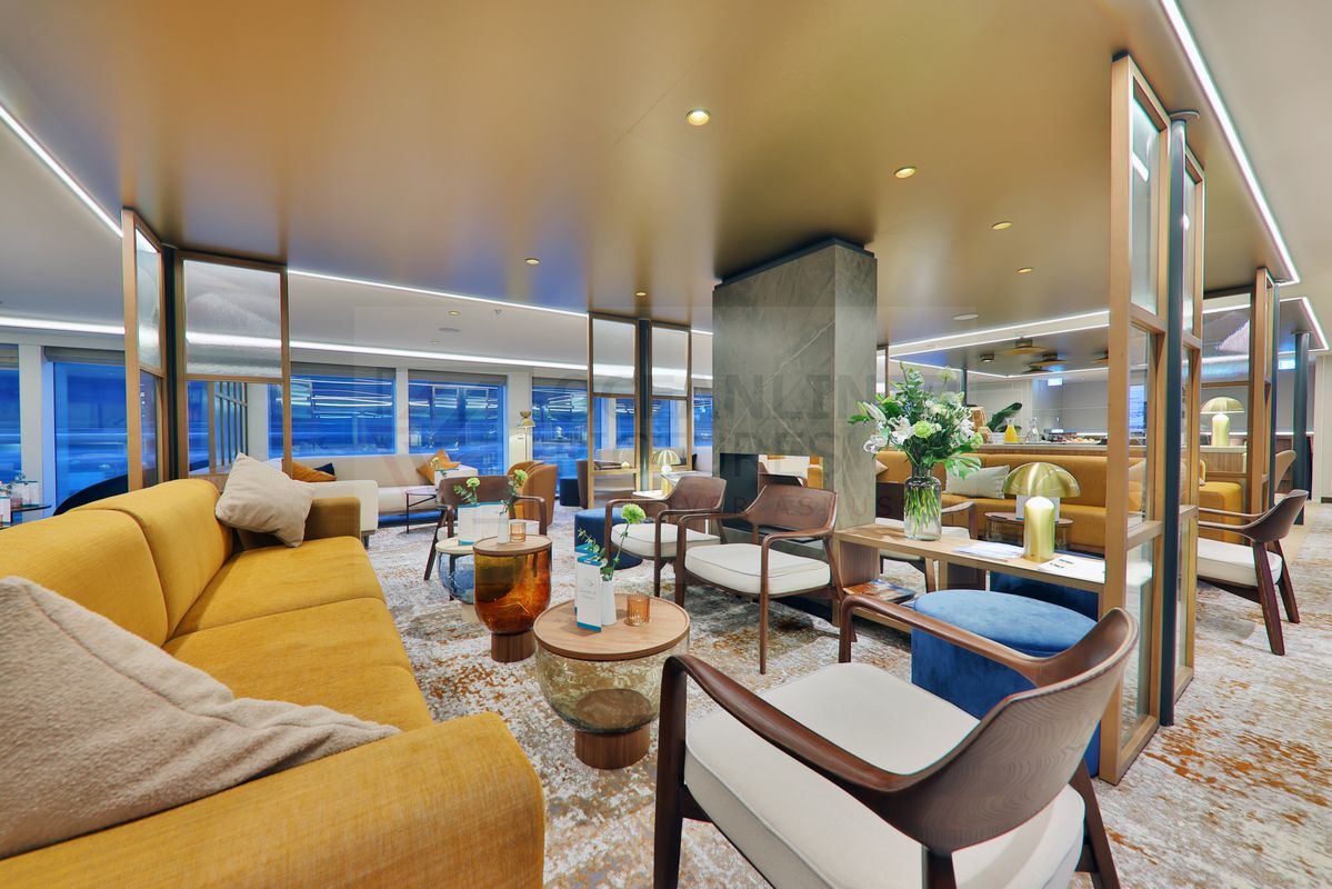Foto: Panorama Lounge mit künstlichem Kamin MS Aurelia