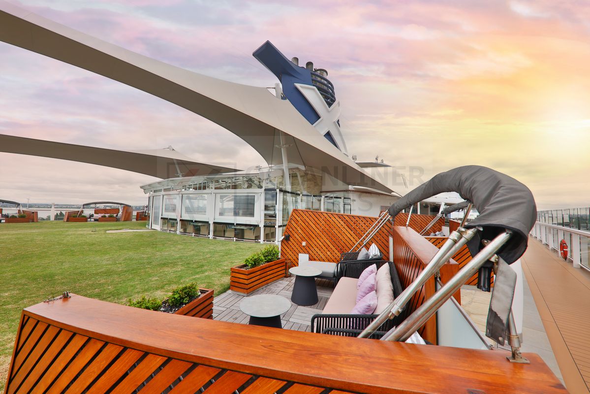 Die Rasenflächen im Bereich der Sunset Bar sind beim letzten Werftaufenthalt einem gemütlichen Loungebereich mit unterschiedlichen Sitzgelegenheiten gewichen. Dieser integriert sich in die Sunset Bar und vergrößert das Sitzplatzangebot deutlich. Die Sunset Bar erfreute sich in den vergangenen Jahren immer größerer Beliebtheit und wurde auf den neuesten Schiffen Celebrity Beyond und Celebrity Ascent zur vielleicht schönsten Bar auf den Weltmeeren.