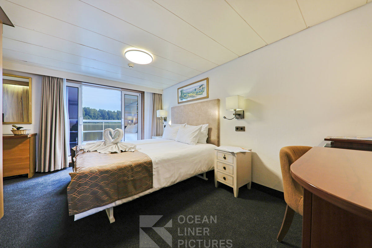 Die Kabinen auf dem Haupt- und Oberdeck sind etwa 12 m² groß und mit zwei Einzelbetten ausgestattet. Alle Kabinen auf dem Oberdeck verfügen über einen französischen Balkon. Die Kabinen auf dem unteren Hauptdeck sind mit kleineren, nicht zu öffnenden Fenstern im oberen Bereich ausgestattet. Die 18 m² große Juniorsuite auf dem Oberdeck verfügt über ein Doppelbett sowie ein großzügiges Bad mit Fenster (nicht zu öffnen).