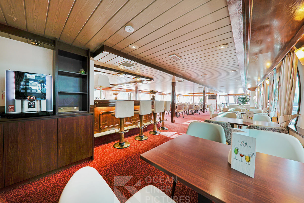 Die gemütliche Panoramalounge überzeugt mit einem hellen Design. Unterschiedlich große Tische bieten sowohl Paaren als auch Gruppen ausreichend Platz. Im vorderen Bereich befinden sich eine kleine Tanzfläche sowie Platz für einen DJ oder Alleinunterhalter. Panoramafenster ermöglichen dabei einen herrlichen Blick auf die vorbeiziehende Landschaft. Die verschiedenen Sitzgruppen sind sehr einladend und eignen sich zum längeren Verweilen.