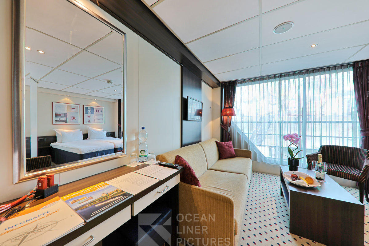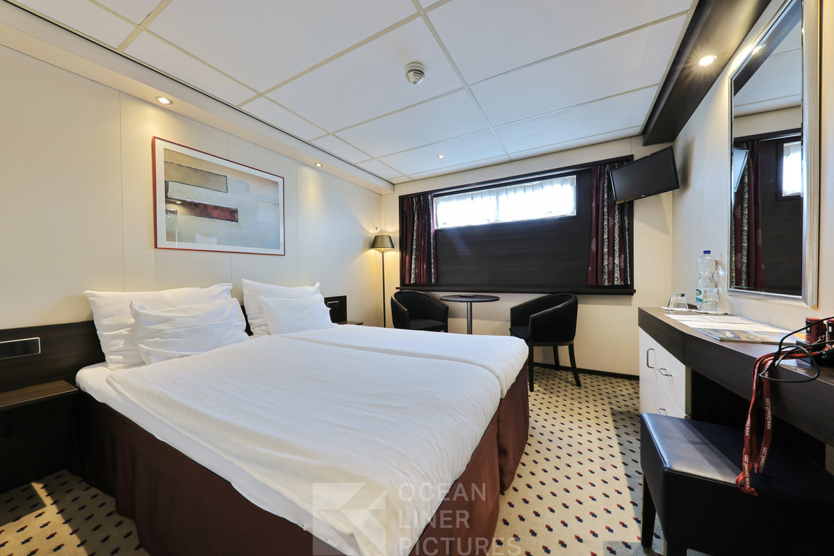 Die Kabinen auf dem Haupt- und Oberdeck sind etwa 15 m² groß und in einem freundlichen Farbdesign gehalten. Alle Kabinen und Suiten auf diesen Decks verfügen über einen französischen Balkon. Die Kabinen auf dem unteren Hauptdeck sind ebenfalls 15 m² groß, verfügen jedoch über kleinere, nicht zu öffnende Fenster im oberen Bereich.