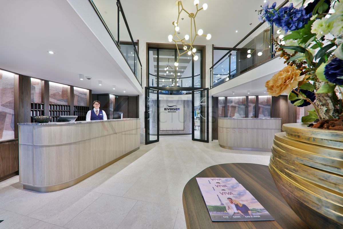 Foto: vorderer Bereich Panoramalounge mit Blick auf Riverside Restaurant VIVA ENJOY