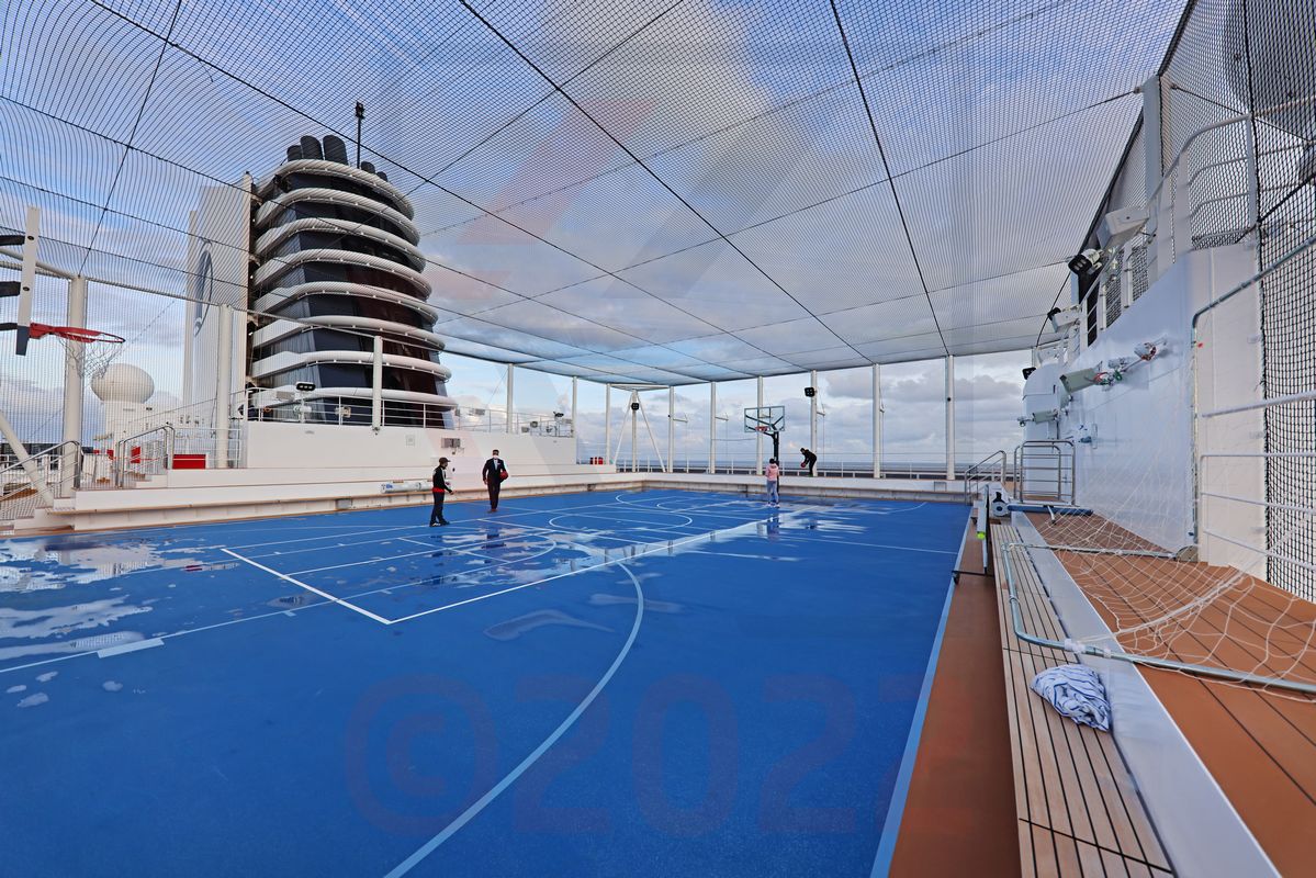Der auf diesem Deck gelegene Sport Court (Mehrzwecksportplatz) lädt zu jeder Art von Ballspiel ein.