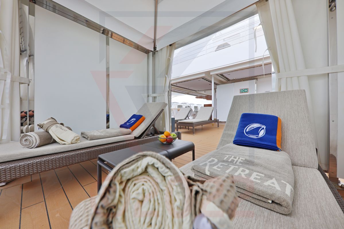 Ein weiteres Highlight ist ebenfalls auf diesem Deck untergebracht - das The Retreat im Stil eines Privatresorts mit drehbaren Clubsesseln und abgegrenzten Bereichen zum Sonnenbaden und Relaxen. Freier Meerblick ist überall garantiert. Ein kleiner Wehmutstropfen ist die geringe verfügbare Deckfläche sowie die wenig exklusive Aufteilung des Bereiches. Hier haben die Mitbewerber bereits deutlich ansprechendere Exklusiv-Areale geschaffen.