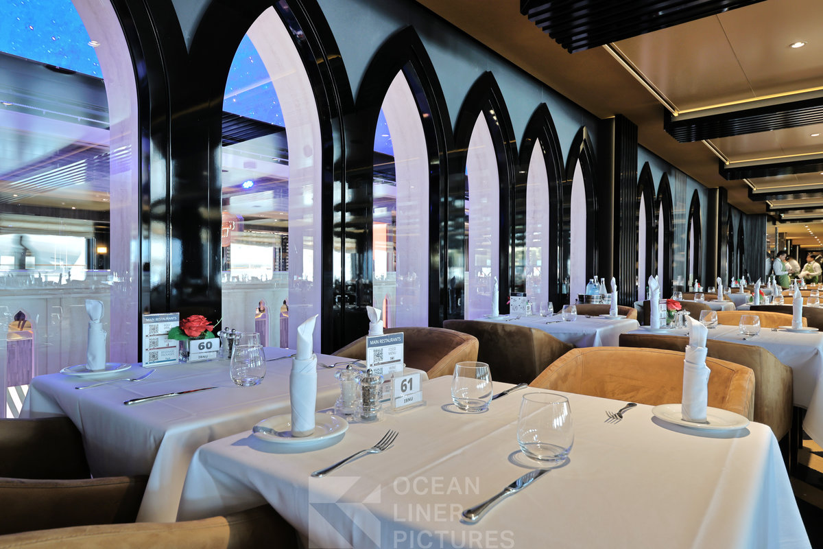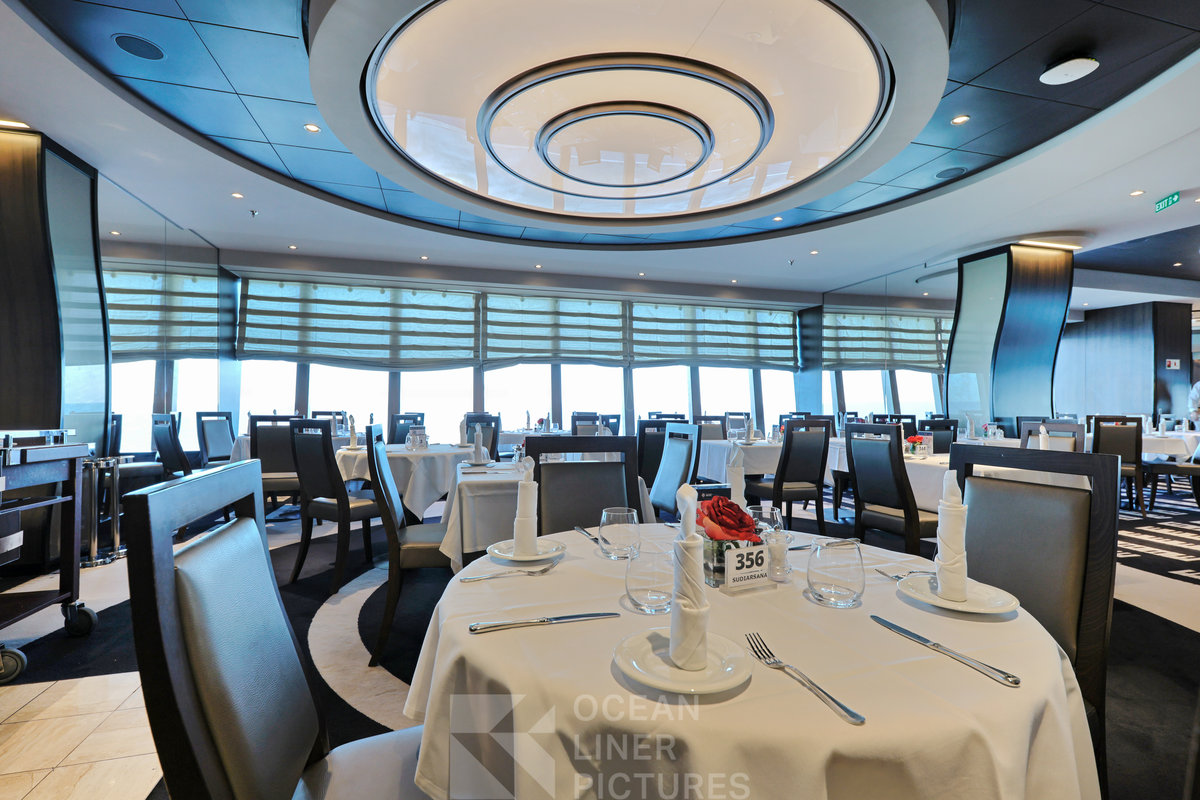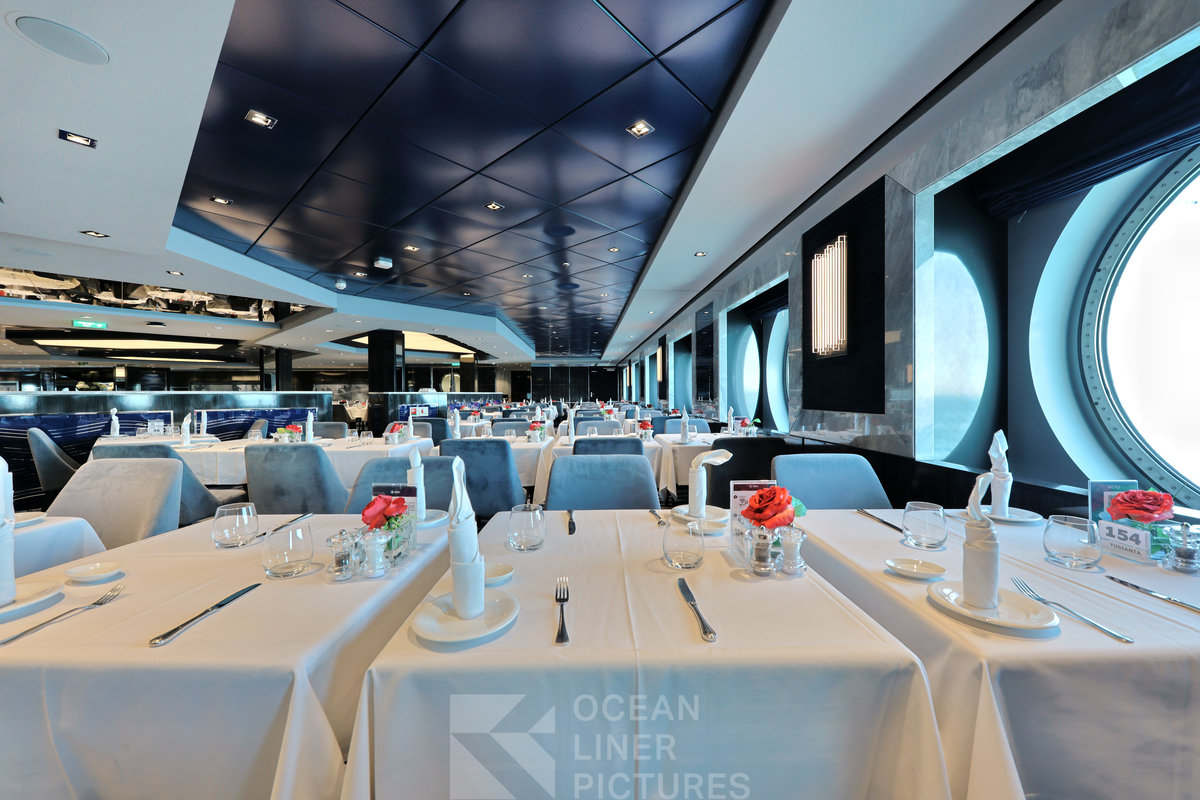 Auf Deck 05 im Heckbereich befindet sich eines der Hauptrestaurants, das Blue Danube Restaurant mit einer Fläche von 1.050 m² und 598 Sitzplätzen. Die Speisekarte in den Hauptrestaurants Blue Danube, Minuetto (Deck 06), The Symphony (Deck 06) und The Opera (Deck 06) bietet eine Auswahl mediterraner und internationaler Speisen. Gespeist wird in stilvollem und modernem Ambiente.