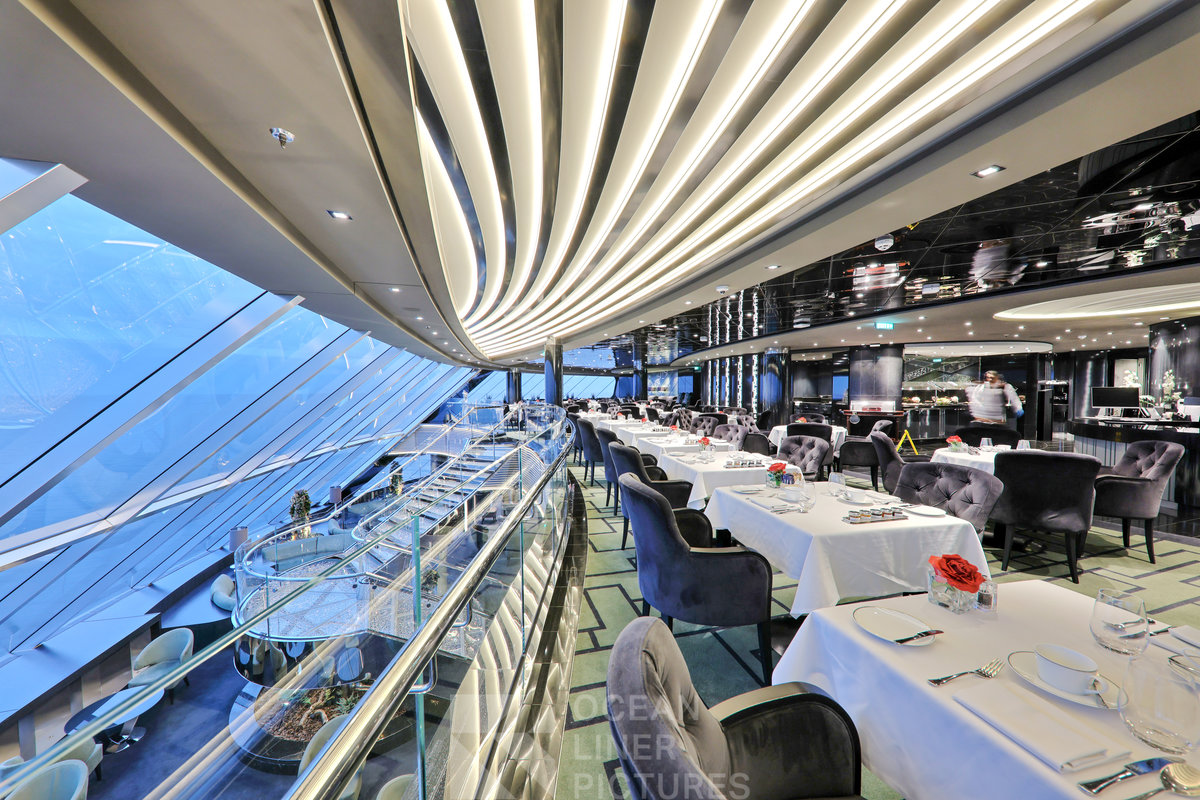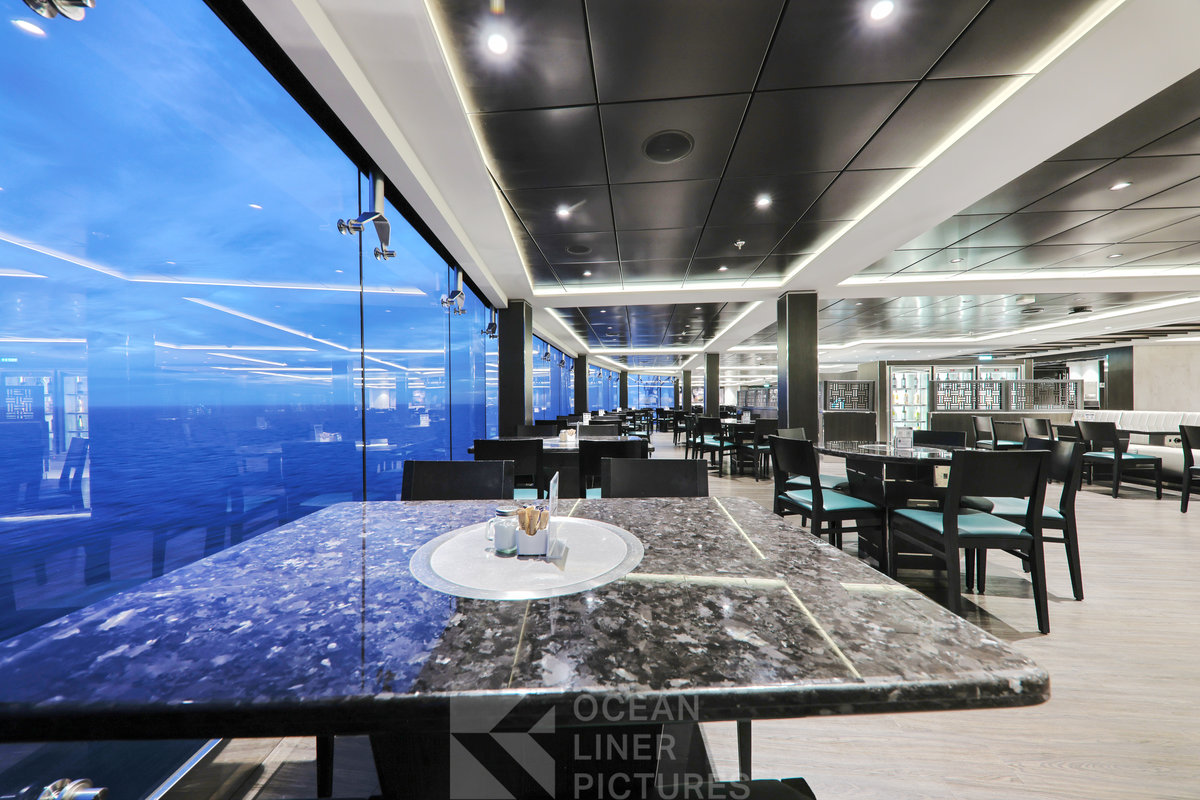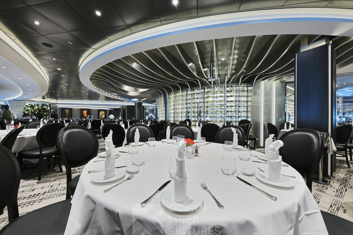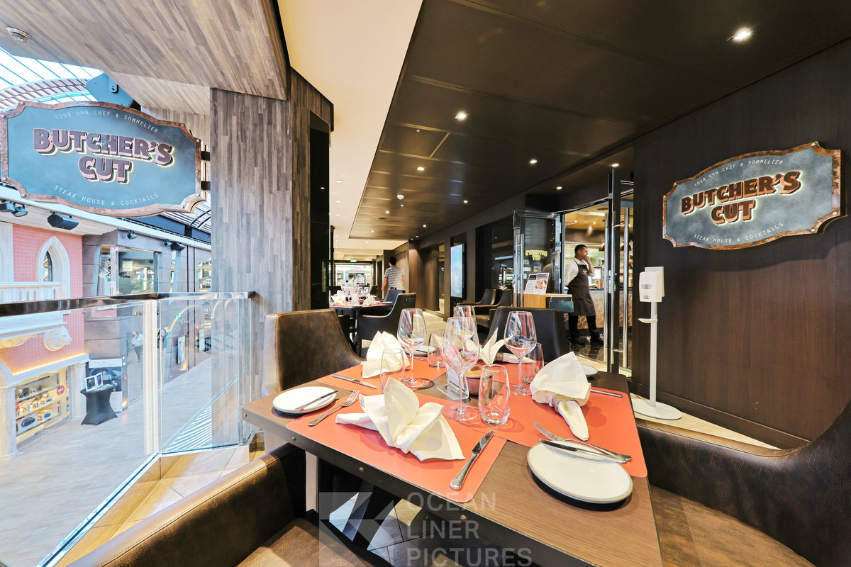 Das Restaurant befindet sich auf Deck 7 und verfügt über eine offene Küche, in der Gäste den Köchen bei der Zubereitung der perfekt gereiften, individuell zugeschnittenen Steaks zusehen können.