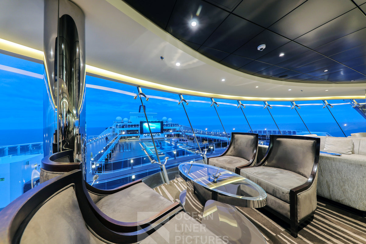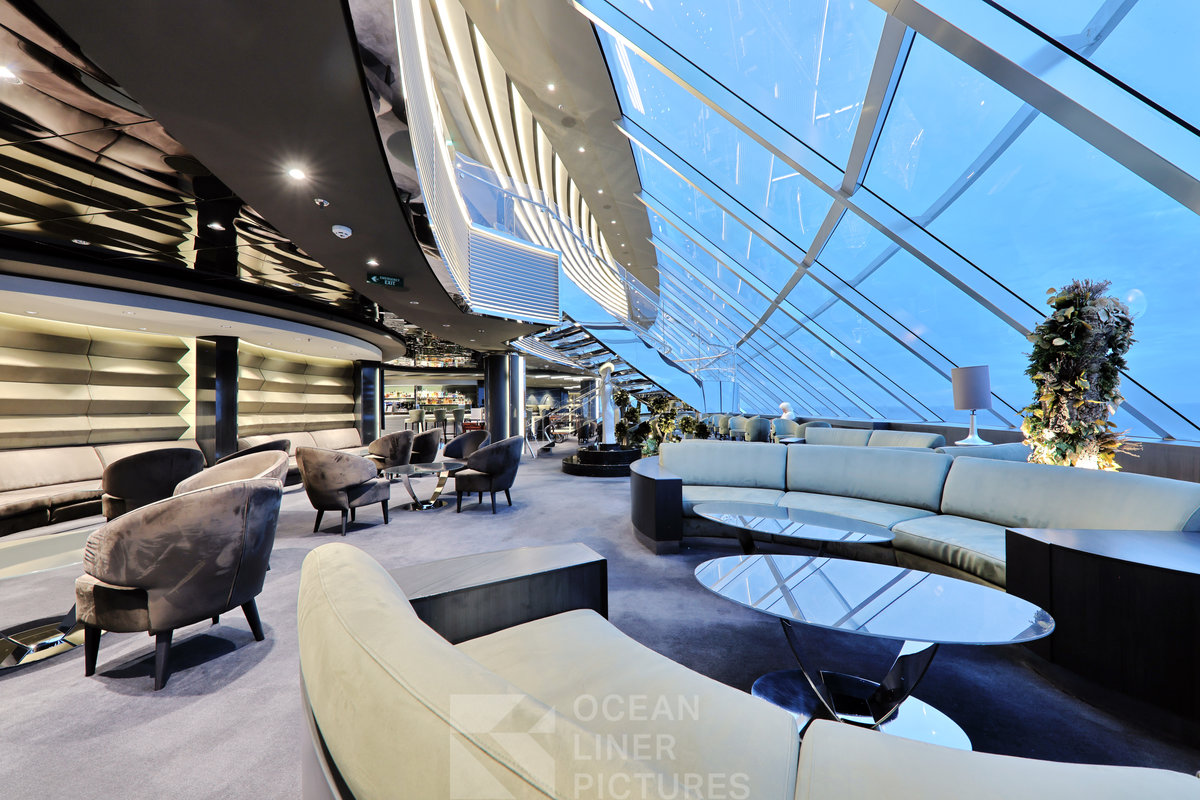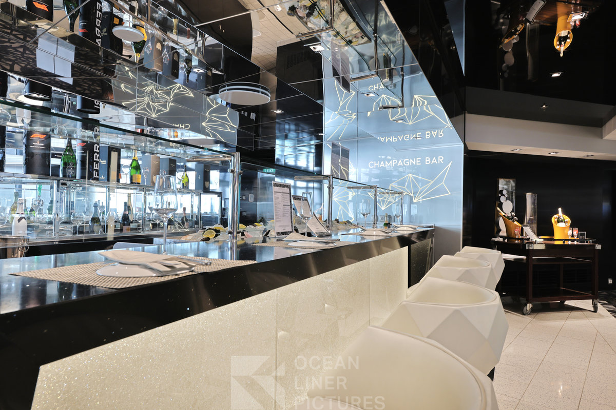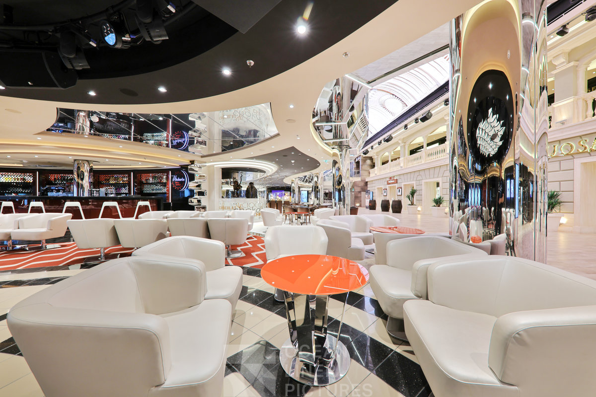 Im offenen und äußerst modern gestalteten Infinity Atrium bildet die Infinity Bar das Herzstück und zugleich einen zentralen Treffpunkt an Bord. Als Pre-Dinner-Cocktailbar ist sie besonders beliebt. Insgesamt stehen hier 21 Plätze zur Verfügung, und während der gesamten Kreuzfahrt ist die Bar gut frequentiert.