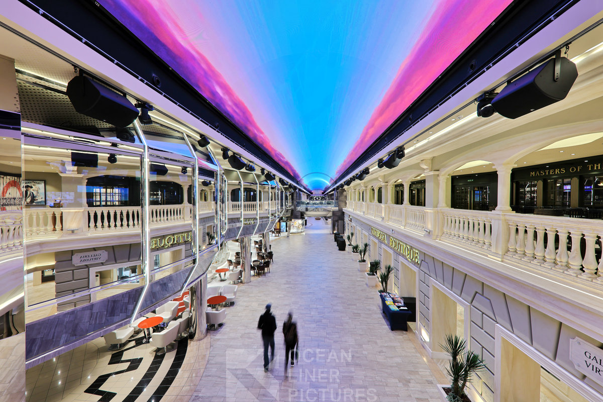 Das absolute Highlight des Schiffes ist die 112 Meter lange Galleria Virtuosa. Die Verkaufsfläche beträgt 1.168 m², doch der eigentliche Blickfang ist der LED-Himmel – der größte auf See. Dieser kann Sternenhimmel, Unterwasserwelten, abstrakte Animationen, saisonale Motive und zahlreiche Farbvariationen darstellen.